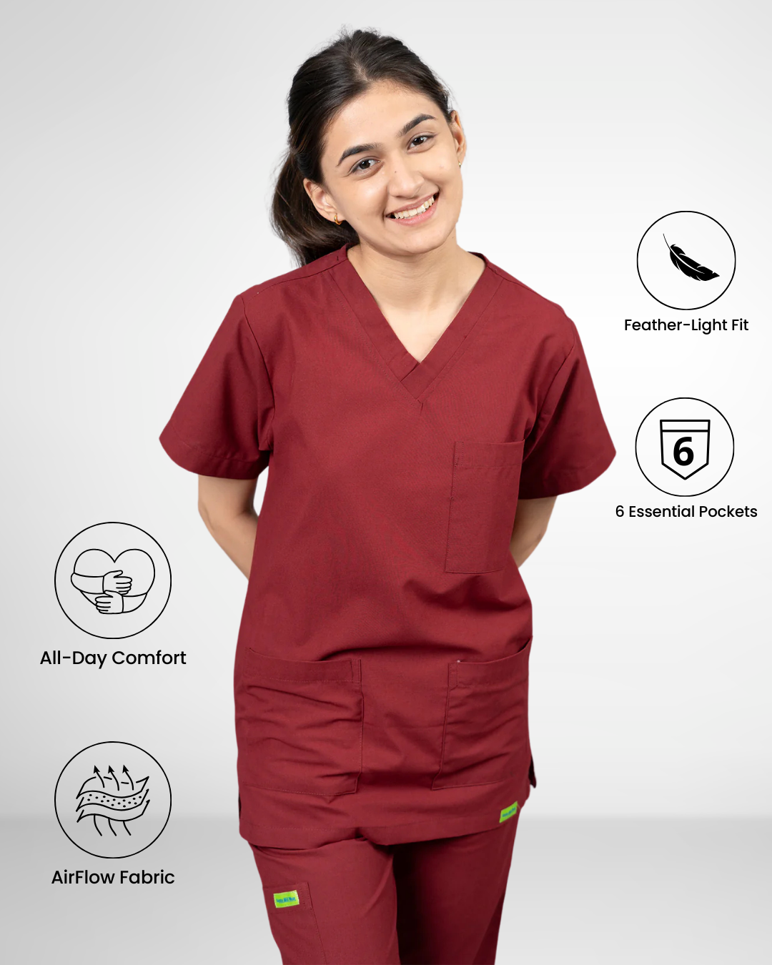 Vastramedwear Basic Medical Scrub Suit for Doctors Women Maroon
